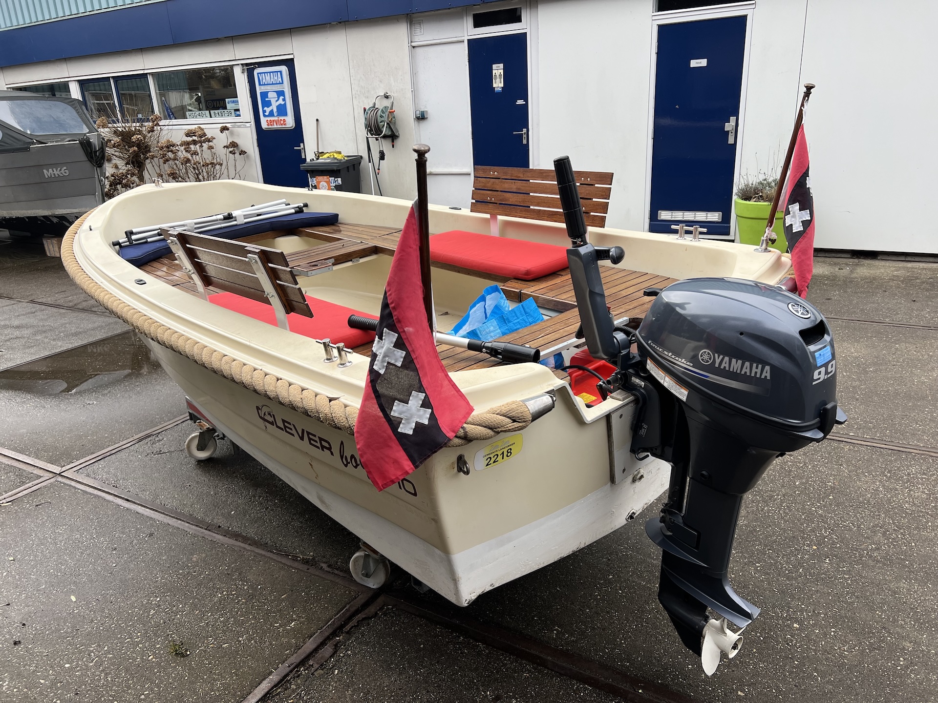 Te koop aangeboden: een leuke en goed verzorgde Clever Boy 410 met een zo goed als nieuwe Yamaha F9.9. De boot is uitgerust met demonteerbare hardhouten banken. Daarbij zijn drie bootkussens inbegrepen. De motor is voorzien van een 12 liter brandstoftank. Daarnaast is de boot voorzien van een afdekzeil met zandzakjes.