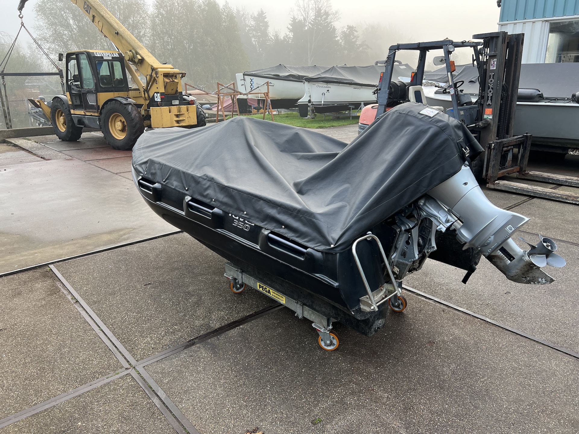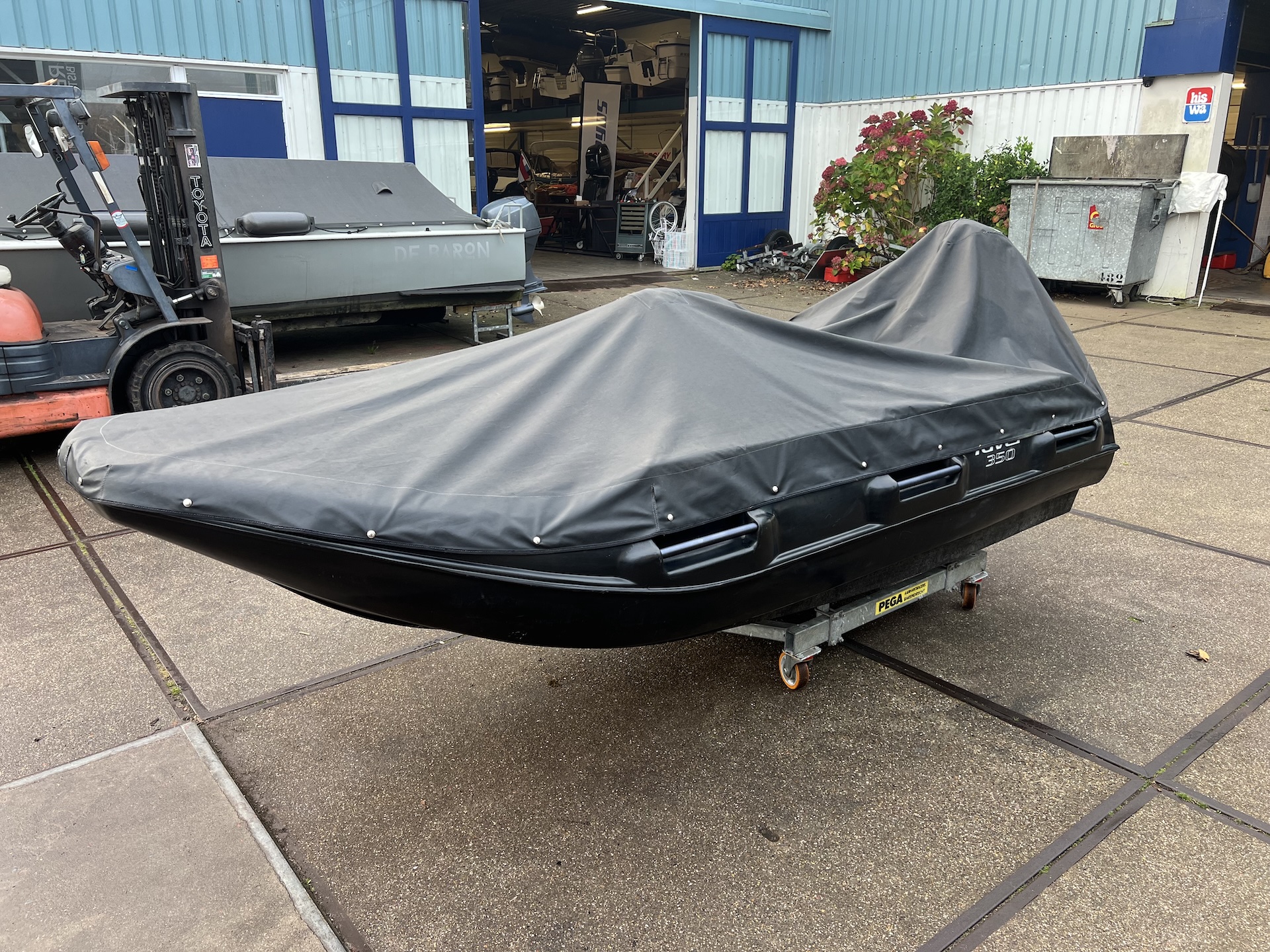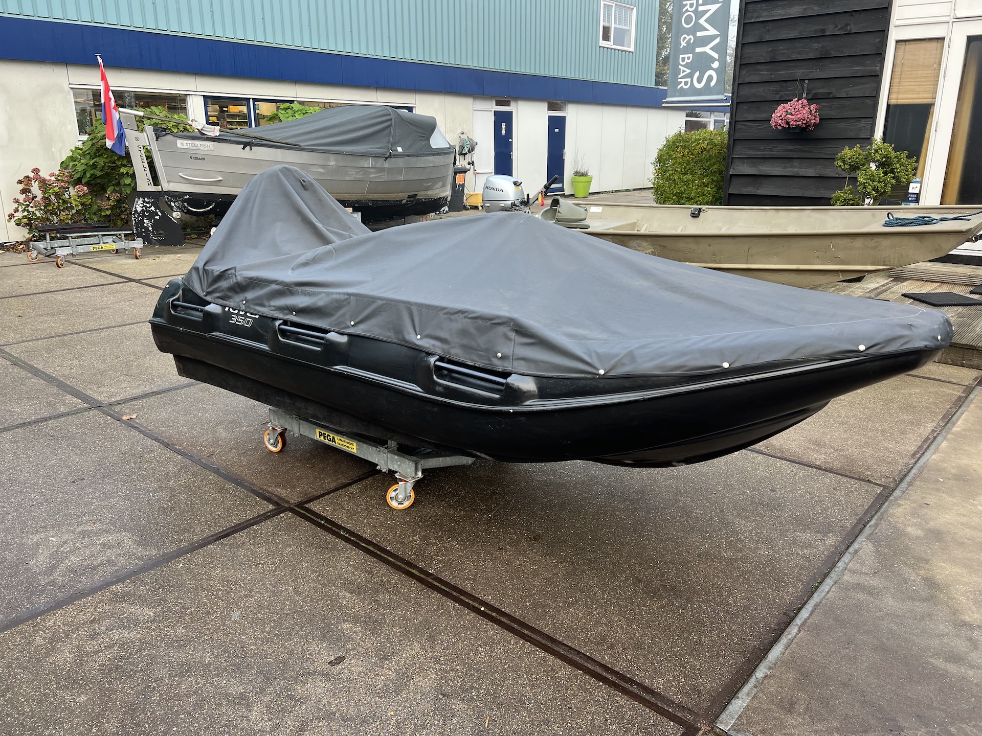Te koop aangeboden: een stoere River 350 XR Blaek edition. De boot is geheel aangekleed met zwart gepoedercoat railing en onderscheidt dit van het standaardmodel. Daarnaast heeft dit model een rvs vlaggenstokhouder én zwemtrap. Compleet met afdekzeil, startaccu en 12L brandstoftank.